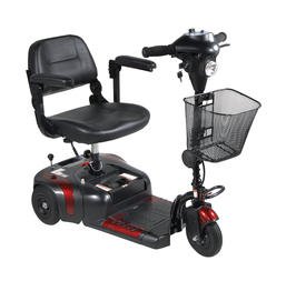 For indoor and outdoor use. New interchangeable color panels (red & blue) included. 3 wheel model allows for 32. 3" turning radius. Convenient, compact design makes assembly/disassembly easy. Easy to assemble and disassemble with 4 pieces. Comes with easy to remove wireless battery that can be charged separately from the scooter. Comes with headlight. New �Finger-Pull� throttle. Comfortable height adjustable, upgraded seat. Flip back adjustable width arms. Speed ranges from . 5 mph to 4 mph and a cruising range of 15 miles. Stackable battery box will allow an optional battery for increased range up to 30 miles. Comes standard with anti tippers. Convenient free-wheel release knob. Flat free tires. Large carry basket. Easy to adjust tiller. For added safety the tiller has an auto straightening function. Has been tested and surpassed the ANSI RESNA testing requirement. 250 lb. Weight Capacity.Read more Drive Medical Phoenix 3 Wheel Compact Portable Travel Power Scooter, Red / Blue